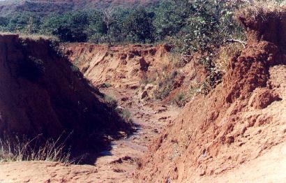 | O desgaste do soloErosão é a destruição do solo e seu transporte em geral feito pela água da chuva, pelo vento ou, ainda, pela ação do gelo, quando este atua expandindo o material no qual se infiltra a água congelada. A erosão destrói as estruturas (areias, argilas, óxidos e húmus) que compõe o solo. Estes são transportados para as partes mais baixas dos relevos e em geral vão assorear cursos d água. A erosão destrói os solos e as águas e é um problema muito sério em todo o mundo. Devem ser adaptadas práticas de conservação de solo para minimizar o problema. Em solos cobertos por floresta a erosão é muito pequena e quase inexistente, mas é um processo natural sempre presente e importante para a formação dos relevos. O problema ocorre quando o homem destrói as florestas, para uso agrícola e deixa o solo exposto, então, a erosão torna-se severa, e pode levar a desertificação. |