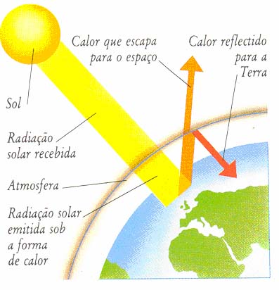 O efeito estufa é o aquecimento da Terra, ou seja, é a elevação da temperatura terrestre em virtude da presença de certos gases na atmosfera. Esses gases permitem que a luz solar atinja a superfície terrestre, mas bloqueia e enviam de volta parte da radiação infravermelha (calor) irradiada pela Terra.