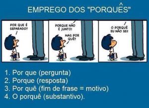 Na língua Portuguesa existem quatro formas de utilizar a palavra “porque”.