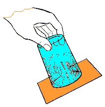 | Encha um frasco ou um copo de vidro com água. Coloque um cartão por sobre a boca (o cartão deve ser fino e apenas um pouco maior do que a boca do recipiente). Mantenha o cartão pressionado firmemente contra a boca, vire o recipiente de cabeça para baixo. Solte o cartão. Ele não cai mesmo que o peso da água pressione o cartão para baixo. A pressão do ar é maior do que a pressão exercida pelo peso da água. O ar exerce forças de pressão em todas as direções. Recomenda-se fazer este experimento sobre uma pia ou uma bacia para o caso de ocorrer um acidente e a água cair. | ![]() |