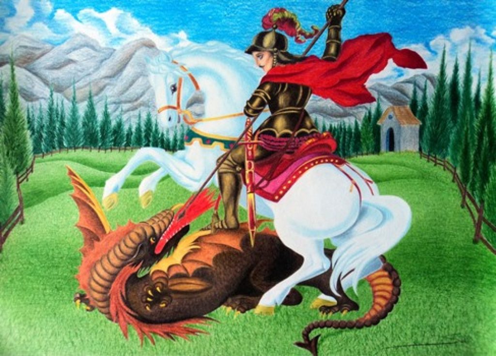 São diversas as lendas que foram criadas nos feitos de São Jorge, entre elas a mais famosa acaba apontando seu duelo com um dragão, com o intuito de defender as vítimas dos seus ataques. Esta é uma cena que acaba compondo a imagem que representa o santo atualmente, onde vemos o mesmo montado sobre um cavalo branco, vestido com a sua armadura, segurando uma lança que atravessa o corpo do dragão.