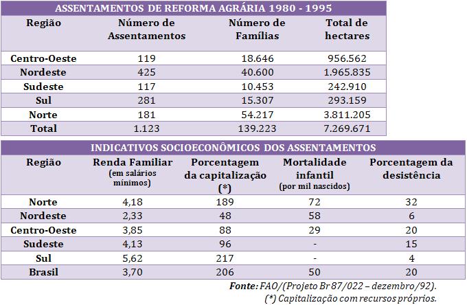 Abaixo, dados do INCRA que apontam o número de famílias assentadas no Brasil ao longo dos últimos governos. Trata-se de uma média anual.