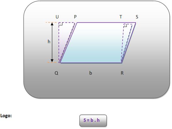 Considerando um paralelogramo PQRS e um retângulo UQRT onde ambos possuem altura h e base b possuindo, portanto a mesma área S.
