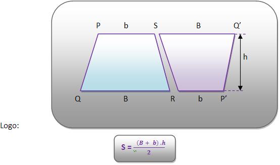 A junção destes dois trapézios resulta no paralelogramo PQP’Q, com uma base que mede B + b e uma altura que mede h, onde a área S do trapézio PQRS é considerada a metade da área do paralelogramo.