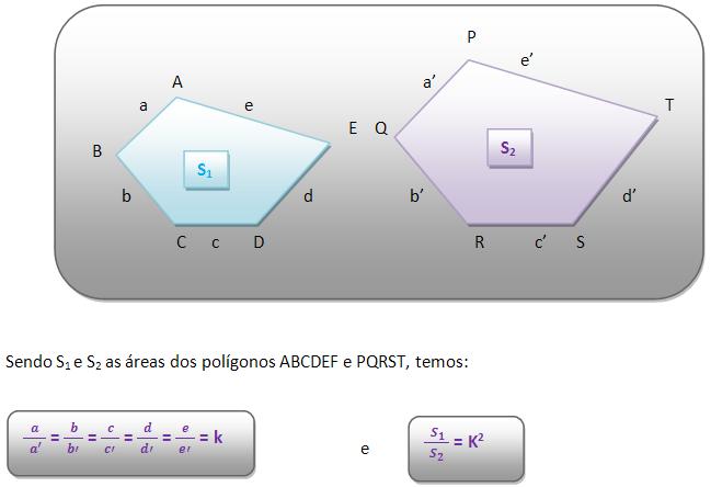 Áreas de figuras semelhantes é a razão existente entre as áreas de duas figuras parecidas, que é igual ao quadrado da razão de semelhança.