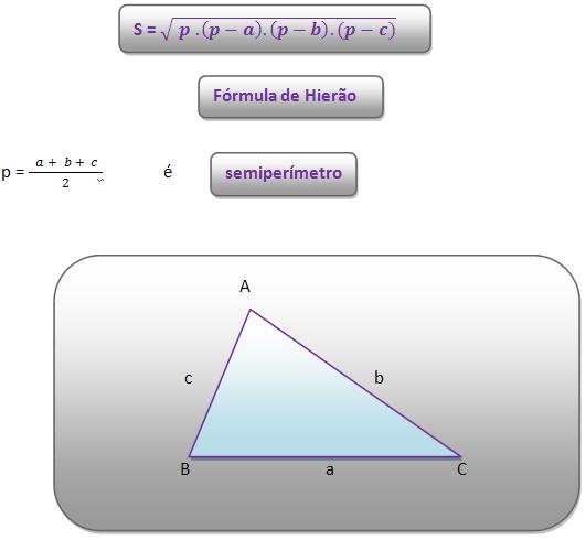 Em função dos lados Redação 14 anos atrás Em função dos lados: Seja a, b e c as medidas dos lados do triângulo ABC de área S: Pela Web
