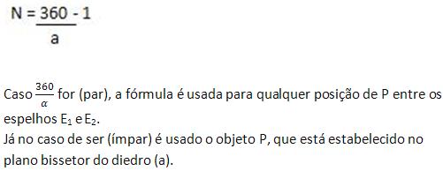 Considerando α como sendo o divisor de 360°, teremos que o número total de imagens que irão se formar (N) é dado através de.