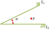 Suponhamos que haja dois espelhos planos (E1) e (E2), que formam um ângulo diedro (a) com superfícies refletoras se “enfrentando” temos:
