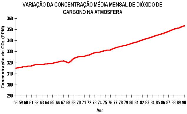 Na primeira metade do século esse tipo de poluição era até considerado benéfico. No livro "Worlds in the making", de 1906, o químico sueco Arrhenius dizia: "Por influência do percentual crescente de dióxido de carbono na atmosfera, temos esperança de desfrutar de épocas com climas melhores e mais estáveis, sobretudo nas regiões mais frias da Terra." Em 1938, o inglês George Callendar achava que o dióxido de carbono que estava sendo lançado no ar "melhoraria o clima do mundo e fertilizaria as terras cultiváveis." No início da década de 80 ainda havia a esperança de que as alterações provocadas pelo efeito estufa não seriam muito intensas. Roger Revelle, dirigente do Scripps Intitution of Oceanography, dizia na época: "As mudanças não serão grandes acontecimentos; serão alterações ambientais lentas e difusas. A maioria das pessoas nem se aperceberá delas, ano a ano." O gráfico abaixo mostra a variação da concentração de dióxido de carbono (média mensal) na atmosfera desde 1958 a 1991, obtida segundo dados fornecidos pela estação de monitoramento de Mauna Loa, no Havaí: