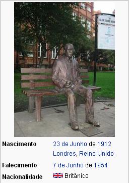 Matemático britânico nascido em Londres e formado nas universidades Cambridge e Princeton, reconhecido como pioneiro na teoria da computação. Filho de um oficial britânico, Julius Mathison, e de Ethel Sara Turing, desde cedo, logo que aprendeu a ler e escrever, demonstrou interesse pela ciência da computação numérica. Concluiu o mestrado no King’s College (1935) e receber o Smith’s prize (1936) com um trabalho sobre a teoria das probabilidades. Neste mesmo ano publicou seu primeiro paper chamado On Computable Numbers (1936), em um jornal chamado On Computer Numbers, no qual introduzia o conceito de uma computação teórica, um hipotético aparelho computacional hoje conhecido como Turing Universal Machine ou máquina de Turing.
