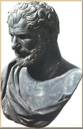 Filósofo, historiador e cientista atomista grego nascido em Abdera, na Trácia, nas costas do Mediterrâneo, considerado o principal representante da escola atomista, que defendia uma explicação totalmente material e mecanicista do mundo, bem como um dos maiores expoentes de todo o quadro de homens sábios da antiguidade grega, rivalizando com Platão, ao qual superou em conhecimentos sobre a natureza. Rico, viajou muito, dispendendo sua fortuna em viagens de estudos, na Grécia, Ásia e Egito, conquistando um vasto saber. Foi discípulo e sucessor de Leucipo de Mileto na direção da escola de Abdera e incansável autor de textos científicos, conheceu Anaxágoras, a quem contrariou em alguns aspectos.