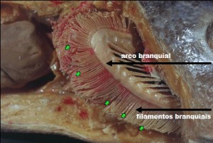 Branquial: específica para animais que vivem nas águas. É um tipo de troca gasosa que ocorre na região da brânquia. Nessa, com formato de lâminas, observamos um elevado tecido vascularizado. No caso dos peixes, por exemplo, o líquido entra pela boca e sai pelas diversas fendas branquiais. Nessa passagem podemos observar o oxigênio da água preenchendo o interior dos vasos de sangue. Já o gás carbônico é expelido para a região externa.