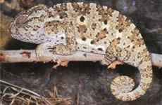 | O Camaleão é se alimenta de grandes quantidades de folhas verdes, e de frutos. Ingere também insetos.