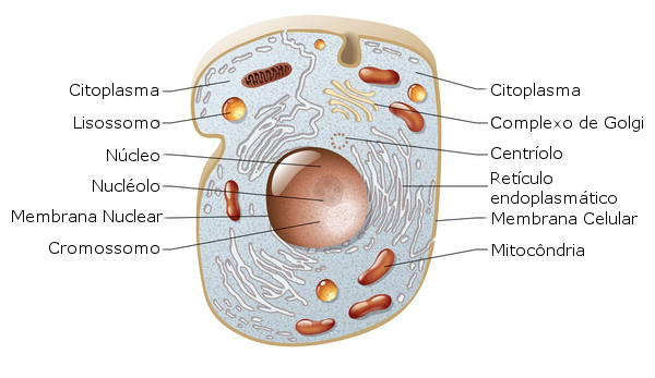 Qualquer célula é constituída por três elementos básicos: o citoplasma – que ocupa o espaço interior da célula em formato líquido – o núcleo – estrutura responsável por comandar todas as outras partes – e a membrana celular – que limita o citoplasma e também controla as substancias que entram e saem da célula.
