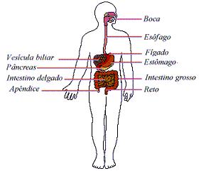 O sistema digestório humano é anatomicamente dividido em: órgãos do tubo e órgãos anexos.