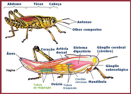 Exemplos: Gafanhoto, barata, bicho-pau, grilo, louva-a-deus.