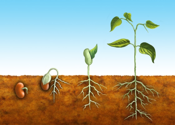 A germinação é o meio pelo qual a planta se reproduz, ou seja, é o início de uma nova planta a partir da semente. Durante a germinação, o caule se forma para cima e se desenvolve formando as folhas que produzem o alimento para a planta. Já a raiz cresce para dentro da terra.