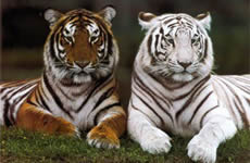 | PELAGEM: A pelagem do tigre tem como cor de fundo o amarelo claro, que pode variar até o tijolo. Existem tigres em que a cor de fundo é branca. O tigre possui garras fortes, dentes afiados e enfrenta qualquer animal. É o maior felino, mesmo velho, fraco e ferido poderá atacar o homem. Hoje, o número de tigres não passa de 5 mil em todo o mundo. É um animal protegido, quer dizer, é proibido caçá-lo. |
