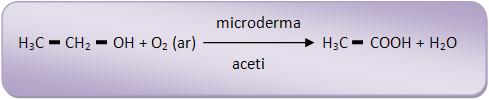 A fermentação acética consiste na reação de transformação do vinho em vinagre, que é catalisada através da enzima alcooxidase, formada pelo fungo Micoderma aceti.