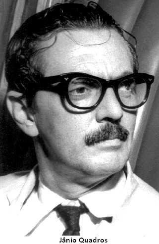 b) Derrota do PTB-PSD – Jânio Quadros derrotara o canditado Henrique Lott, pela coligação PTB-PSD, nas eleições de 1960. Pela primeira vez, desde 1946, esta coligação perdia uma eleição presidencial. Mas não foi uma derrota total, já que o vice-presidente era do PTB. c) Vice-presidência – O vice-presidente mais uma vez era João Goulart, pelo PTB. A Lei Eleitoral dessa época permitia que se votasse em candidatos a presidente e a vice-presidente em chapas diferentes. |