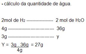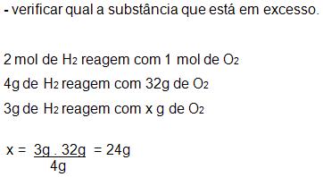 Se adicionarmos 3g de hidrogênio e 30g de oxigênio obteremos a seguinte massa: