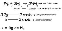 Na reação N2 + H2 NH3, qual é a massa de H2 que reage, quando são obtidos 3 mols de NH3?