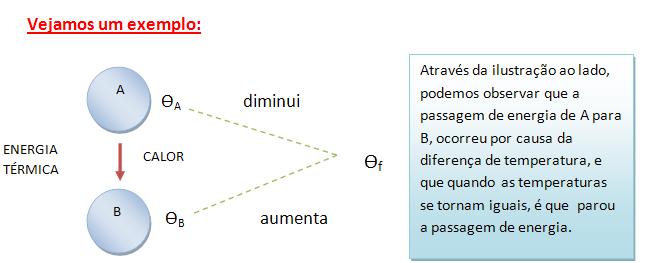 Colocando dois corpos, de temperaturas diferentes (quente e frio) em contato, percebe-se que a temperatura do corpo mais quente diminui, enquanto que a temperatura do corpo mais frio aumenta. Após certo tempo, as temperaturas dos dois corpos igualam-se. Nesse momento, o fluxo de calor é interrompido, e diz-se que os corpos se encontram em equilíbrio térmico.