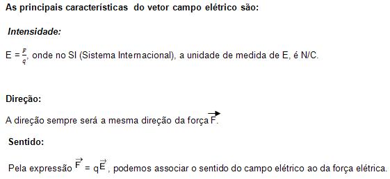 Iremos associar um vetor E, para cada um dos pontos P, de qualquer campo elétrico.