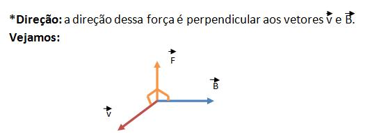 De acordo com a figura acima, podemos observar que F é perpendicular a v e B.