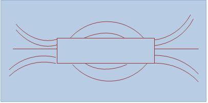 A partir da figura acima, vamos imaginar que a região azul seja uma cartolina e que encima dessa cartolina tenha um imã (preto), e que ao seu redor tenha um campo magnético que atrai limalhas de ferro, com isso podemos concluir que conforme a limalha de ferro vai caindo sobre a cartolina, vai se formando a imagem do campo elétrico.