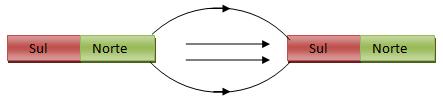 Existe outro caso, que é quando o campo magnético se constrói entre os dois pólos de dois imãs (em forma de barra) que são postos um perto do outro.