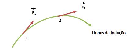 Para sabermos quando ele está sendo representado basta olharmos para as linhas de indução, pois elas são desenhadas, tangenciando a linha em cada um dos seus pontos.