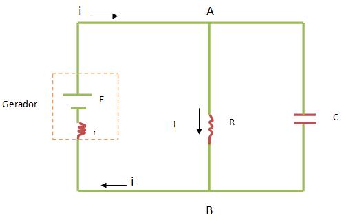 Outro fator que faz com que a d.d.p seja igual a U, é o fato de o capacitor estar ligado aos pontos A e B. Ela não passa pela corrente completa, porém ela é capaz de se carregar, sendo que a sua carga elétrica vale: