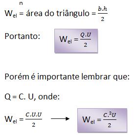 Podemos considerar um valor de d.d.p, que seja igual a U, onde há uma carga elétrica Q. considerando a área com os riscos verde, como mostra a ilustração acima, iremos obter numericamente o valor total da energia elétrica, representada por Wel, que consequentemente estará armazenada no capacitor.