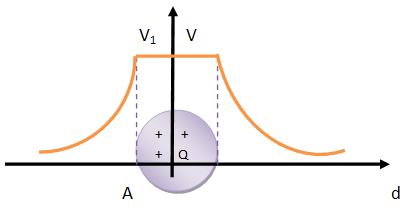 Pensando em um condutor representado por A e que está carregado com uma carga Q positivamente, onde Q cria um campo elétrico, com um potencial variável.