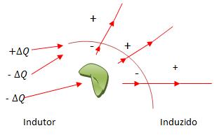 Considerando a carga elétrica representada por +Q, sendo que ela está em grande quantidade do indutor B, podemos dizer que as cargas induzidas que está no condutor A (oco), irá ser –Q e +Q.