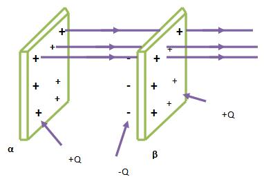 Se pensarmos em um plano infinito de cargas representado por + Q, considerando que ele foi colocado em paralelo junto com outro plano infinito. Com isso ocorrerá uma indução total, fazendo com que as cargas sejam +Q e –Q.