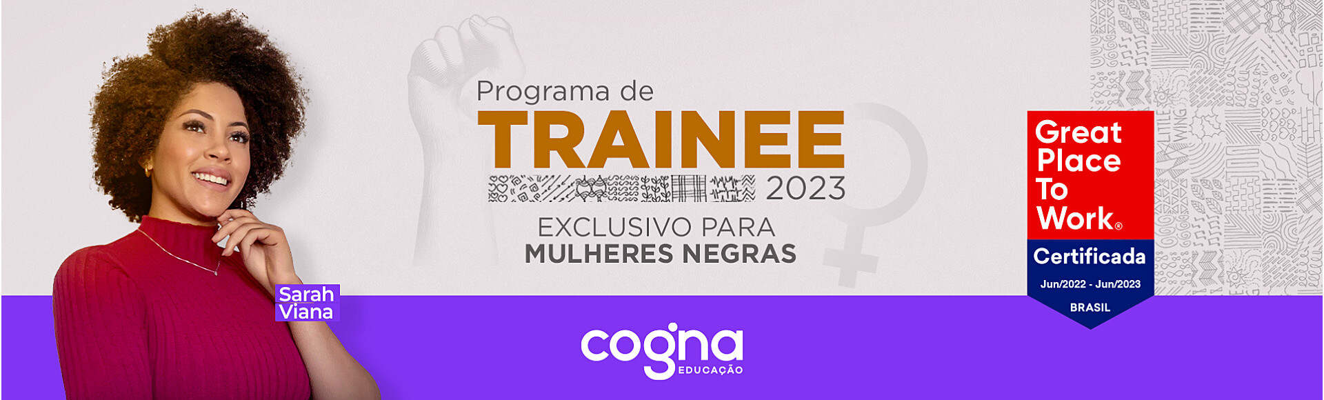 A Cogna, grupo que atua no segmento de educação e que é dono de marcas como Kroton, Platos, Saber e Somos Educação, anunciou a abertura do seu primeiro Programa de Trainee que terá vagas exclusivas para mulheres negras. As oportunidades poderão ser disputadas tanto por mulheres cis quanto por trans.
