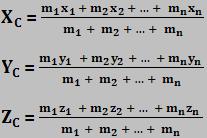 A definição da posição do centro de massa (CM) do sistema é realizada pelas coordenadas cartesianas XC, YC e ZC, obtidas através de uma média ponderada entre as coordenadas dos pontos materiais, tomando-se como pesos, na média ponderada, as respectivas massas dos pontos materiais.