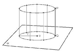 Consideremos um círculo de centro O e raio r num plano , e um segmento de reta , cuja reta suporte intercepta em Q. Temos segmentos de reta paralelos e congruentes a , cada um deles com uma das extremidades num ponto do círculo e a outra extremidade num mesmo semi-espaço dos determinados por ele. A reunião de todos esses segmentos é um sólido chamado cilindro.