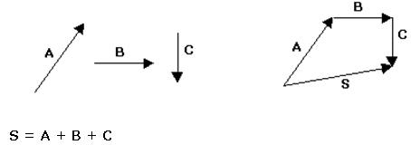 Ligam-se os vetores origem com extremidade. O vetor soma é o que tem origem na origem do 1º vetor e extremidade na extremidade do último vetor.