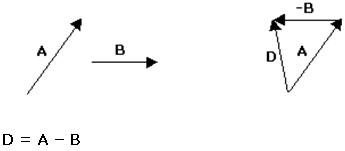 Para subtrair dois vetores adicionamos um deles ao oposto do outro.