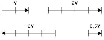 O produto de um número real n por um vetor A, resulta em um vetor R com sentido igual ao de A se n for positivo ou sentido oposto ao de A se n for negativo. O módulo do vetor R é igual a n x |A|.