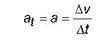 Aceleração tangencial (a t) – é o componente da aceleração vetorial na direção do vetor velocidade e indica a variação do módulo deste. Possui módulo igual ao da aceleração escalar:
