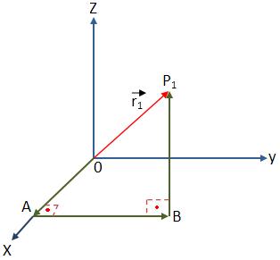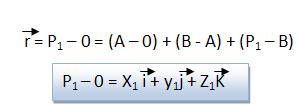Conforme os três eixos cartesianos, o vetor P1 – O pode ser considerado a soma de seus componentes. Vejamos o esquema: