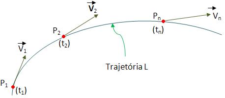 Quando nos referimos às figuras acima, podemos dizer que P, pode descrever qualquer trajetória, sendo V sua velocidade vetorial em qualquer instante t.