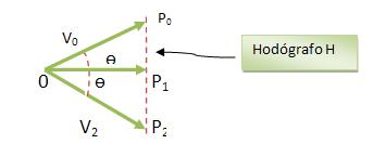 Na figura acima, o movimento balístico, é o hodógrafo do segmento da reta vertical P0 P2.