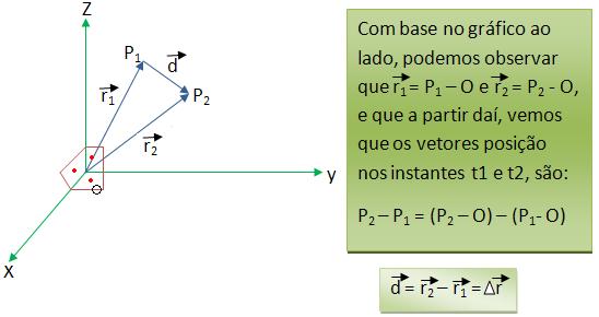 Com isso, o deslocamento vetorial é definido como a diferença entre os vetores posição.
