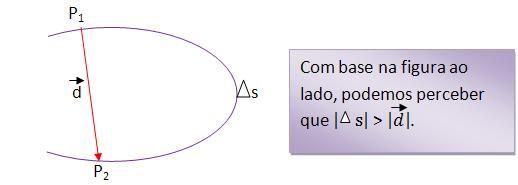 * Como o deslocamento vetorial não depende da forma da trajetória, ele irá servir somente para a posição inicial de P1 e para a posição final de P2.