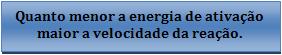 E quanto menor a energia de ativação mais fácil será para ocorrer a reação. Desse modo, as reações rápidas necessitam de pouca energia para ocorrer.